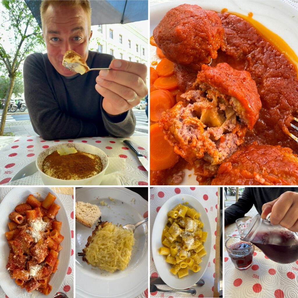 Looking at all that art got us hungry so we walked into the Parioli neighborhood and enjoyed an affordable and tasty lunch at Osteria da Paolina, where Roman classic dishes are listed on a chalkboard menu. The vibe around there was bright, airy and livable. We’d look to rent in this neighborhood on our next trip to Rome.