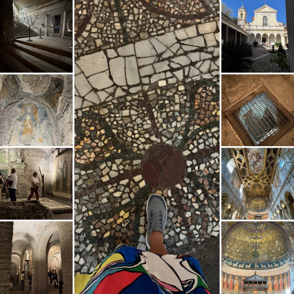 Above these two excavation area is the current Basilica of the twelfth century, with its magnificent mosaic, the frescoes of the early Renaissance, the marble choir of the sixth century from the previous church, and a lovely geometric stone floor in a style called Cosmatesque. The tour was self-guided with a provided English-language pamphlet, and it was a nice way to explore part of “underground” Rome.