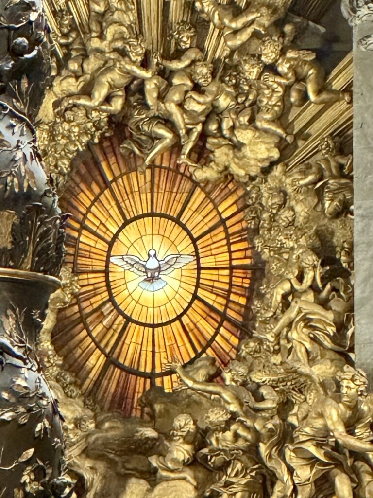 Once inside St. Peter’s, there was more space but even though there was a mass taking place, the crowd was filled with phones being lifted in the air and lots of selfies in front of the beautiful marble statues. But even with certain areas of the cathedral roped off for crowd control (and the mass that was taking place), it was still a beautiful sight. We modified the Rick Steves audio tour and spent about an hour inside.