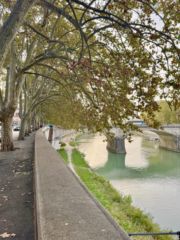 We continued walking northward trying to take avenues we had not previously explored. Often we turned to each other and said “oh, we’ve been here before.” Eventually we reached the Tiber River and followed the gentle river curves. It was mostly peaceful on this route as there weren’t many people except the pushy tour groups hogging the sidewalks at each bridge crossing the river.