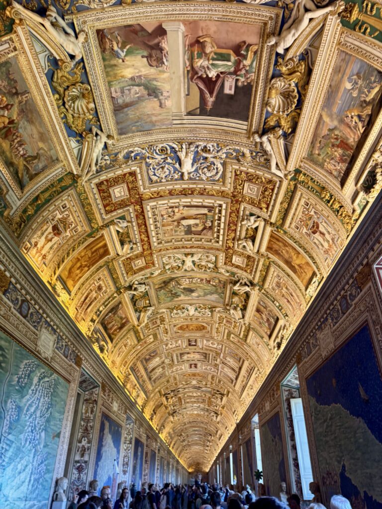 Finally, we re-entered the inside of the Vatican Museum, received information about the Sistine Chapel ceiling, and made our way to the famous room. But before entering we weaved down very long and fully adorned corridors. The anticipation was palpable and built with every step.