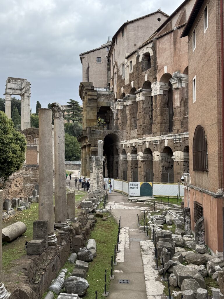 Just around the corner from every piazza in Rome is something grand and old and just beneath that there is something older. It’s one of the things that makes this city so wonderful. The Jewish neighborhood is small, 7 acres, but the streets showcase a lot of history. For example the Marcelo theater, which is older than the Coliseum, is tucked behind some apartments and nestled next to an old temple. And the old stones are just sitting there for pedestrians to shuffle past.